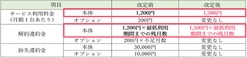 サービス利用料金および解約違約金の見直しが行われます。